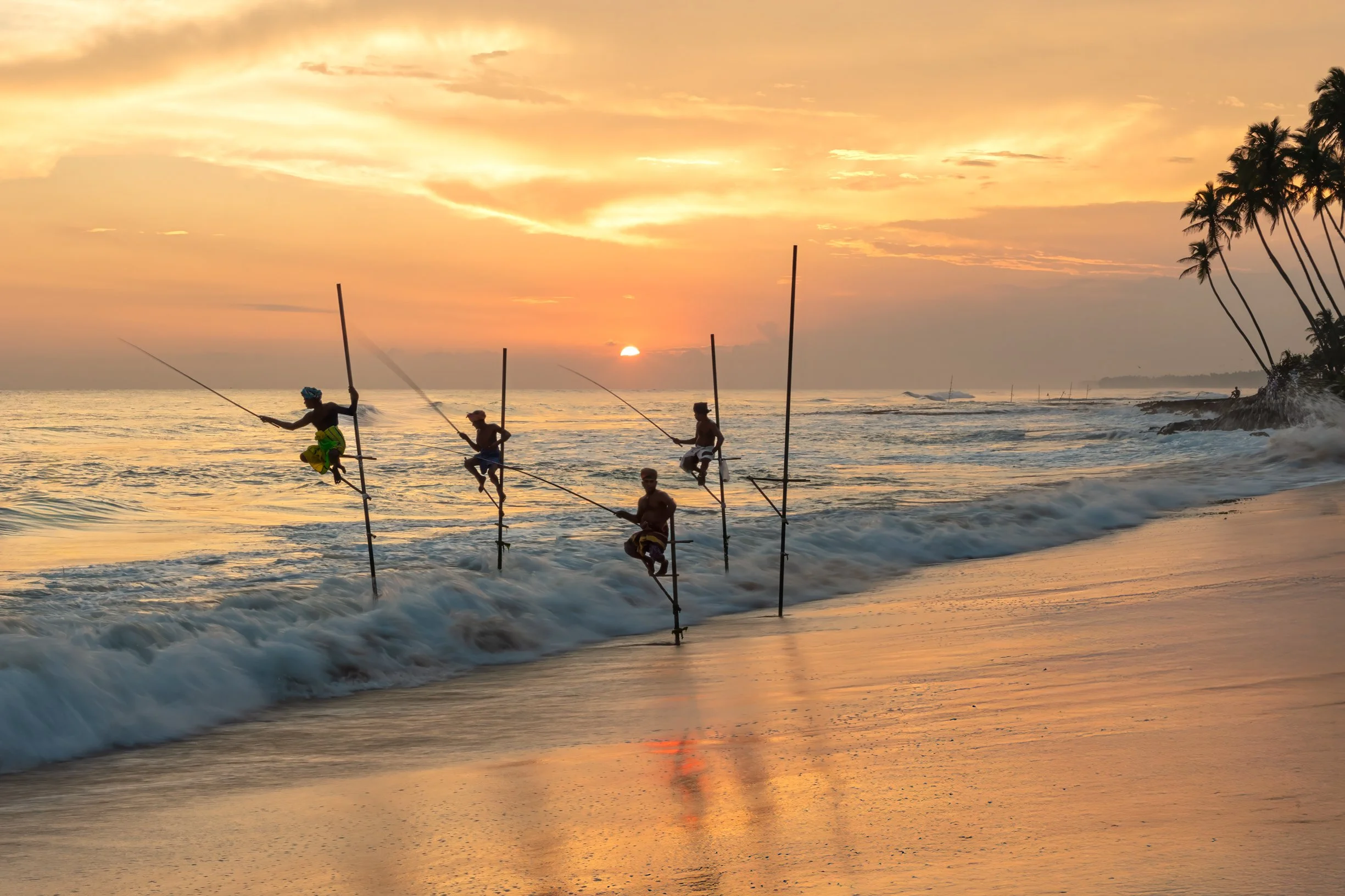 After we check into the hotel we drive to Koggala to photograph at sunset the stilt fisherman, unique to Sri Lanka on the beaches of this coastal town.